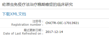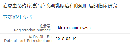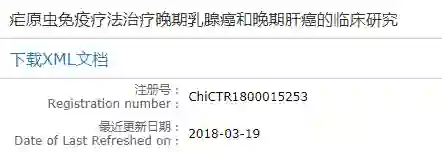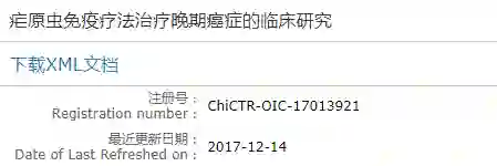 6. 疟原虫免疫疗法治疗晚期癌症的临床研究http://www.chictr.org.cn/showproj.aspx?proj=22194