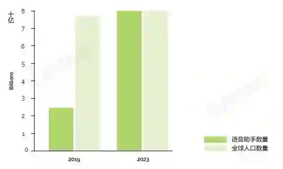 根据Juniper Research的数据,目前市面上已有25亿个语音助理存在。随着科技巨头争相加入竞争,越来越多家庭正在启用语音服务。在美国,家用智能音箱的总数2018年大幅增长78%,从6670万台增加至1.855亿台。亚马逊在这个市场的份额达到64.6%。Canalys预计,全球范围内智能音箱的装机量到2023年将增长至5亿台。