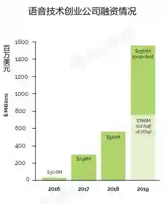 根据我们的分析,对语音创业公司的投资正在加速。语音技术创业公司今年已融资7.86亿美元,远远超过2018年的5.81亿美元以及2017年的2.98亿美元。这样的融资增长表明了市场的信心,即语音技术将带来变革。融资的规模也在大幅上升,2019年到目前为止平均交易规模是3000万美元,而2018年和2017年分别为1800万美元和1750万美元。