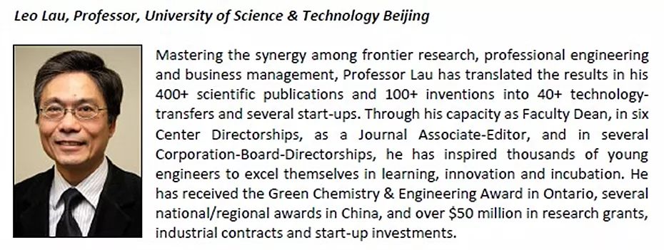 刘焕明教授于2016年受聘于北京科技大学,之前曾担任香港中文大学理学院院长、加拿大西安大略大学表面科学中心主任、北京计算科学研究中心能源与材料部主任、成都绿色能源与绿色制造技术研发中心主任等职务。刘焕明教授专长于表面科技、绿色能源与绿色科技、纳米科技的研发与工程应用,共发表论文400篇,技术创新成果包括授权专利100项和技术转移40项。刘焕明教授在北京科技大学支持下组建绿色创新中心,该中心已构成梯队型前沿科研团队及建成有特色与竞争优势的科仪设施,产出20余篇影响因子11-22的论文及多项已部署产业化的创新技术,并开展国际科研合作,特别是中加两国的协同科技创新与工程应用。