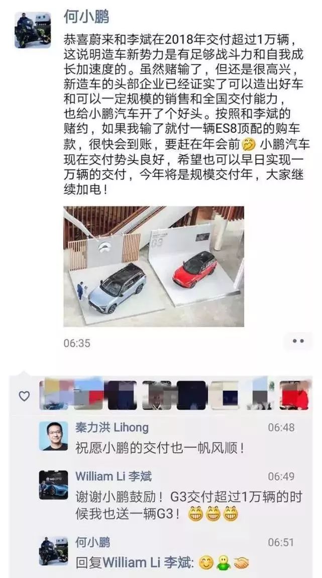 何小鹏愿赌服输:将付一台ES8购车款给李斌