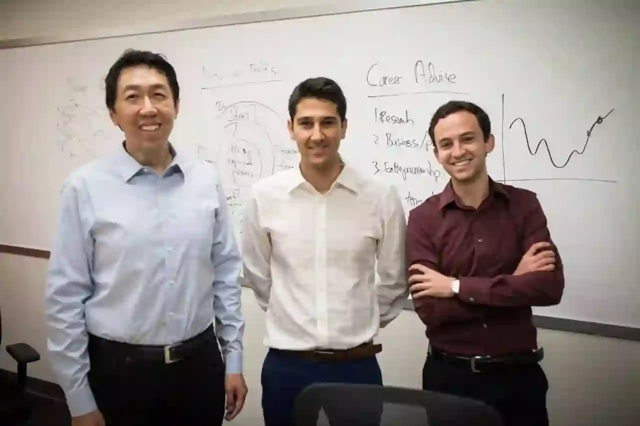 题图:吴恩达和他的助教 Kian Katan 和 Younes Mourri / deeplearning.ai