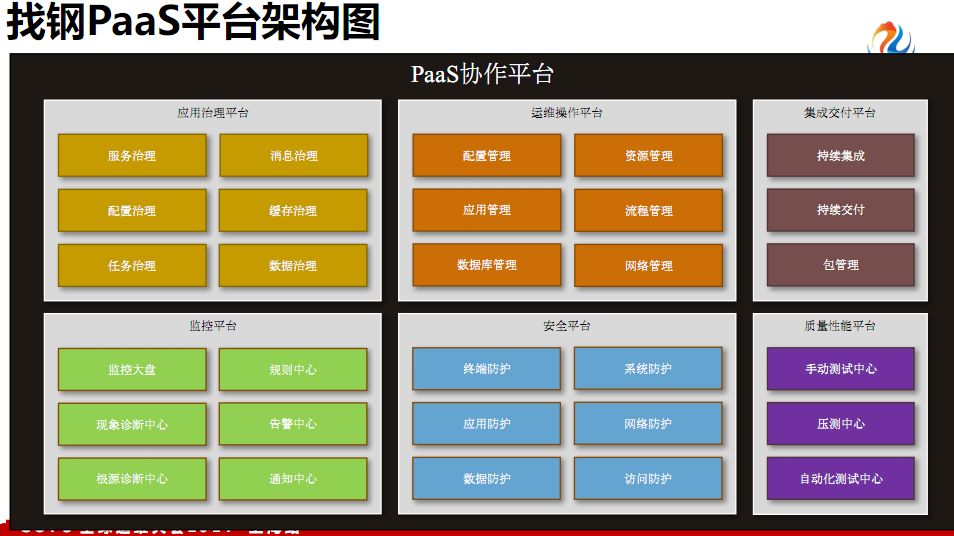这是找钢网的PaaS平台,这里还有一个研发管理没有列进来。虽然数据讲起来很简单,实际上推动起来很难。想统一别人是非常难的事情。可能做一个系统只需要一个月,统一规范别人可能要一年。找钢网一年多的时间把平台搭建起来,并且形成统一的规范,出数据度量别人,其实成绩已经非常不错了。