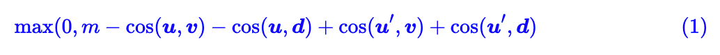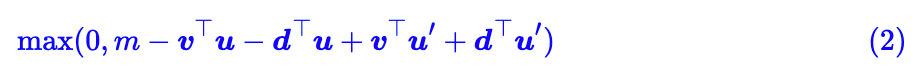 假定 u,v,d 都已经归一化的情况下,那么目标 (1) 就是(每个向量被假设为列向):