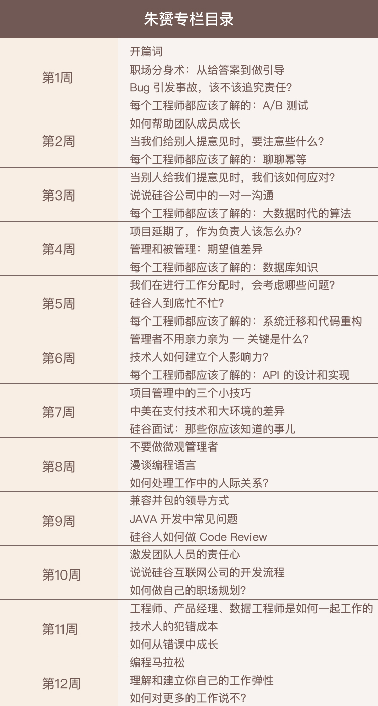 今天是《朱赟的技术管理课》专栏开始预售的日子,在苹果商店下载“极客时间”App,即可查看并订阅专栏,成为第一批读者。