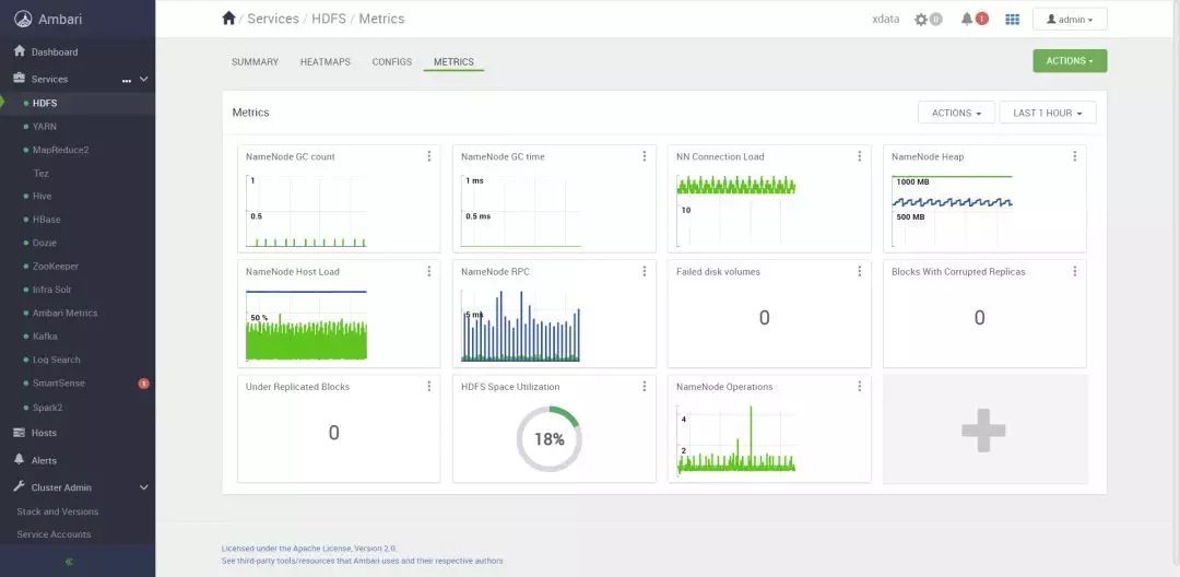 CDH是一款开源的集部署、监控、操作等于一体的Hadoop生态组件管理工具,也提供收费版(比免费版多提供数据备份恢复、故障定位等特性)。CDH提供的HDFS监控界面在体验上是非常优秀的,是对HDFS监控指标深入发掘之后的浓缩,比如HDFS容量、读写流量及耗时、Datanode磁盘刷新耗时等。