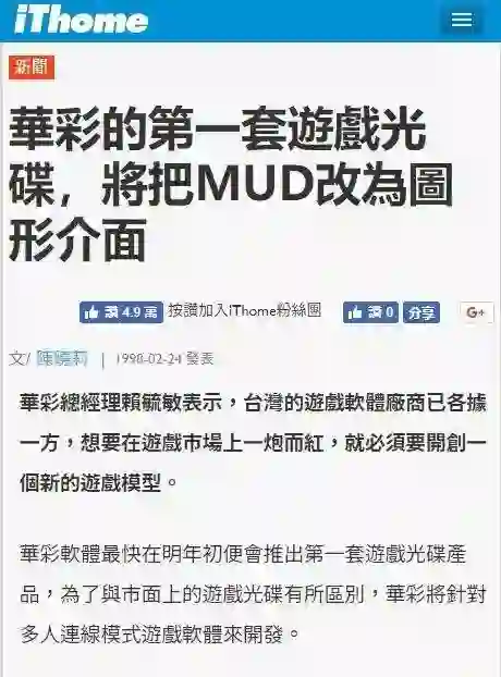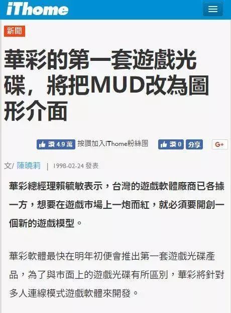 在这篇20年前的报道中,华彩总经理赖毓敏表示,台湾的游戏软体厂商已割据一方,想要在游戏市场上一炮而红,就必须要开创一个新的游戏模型。