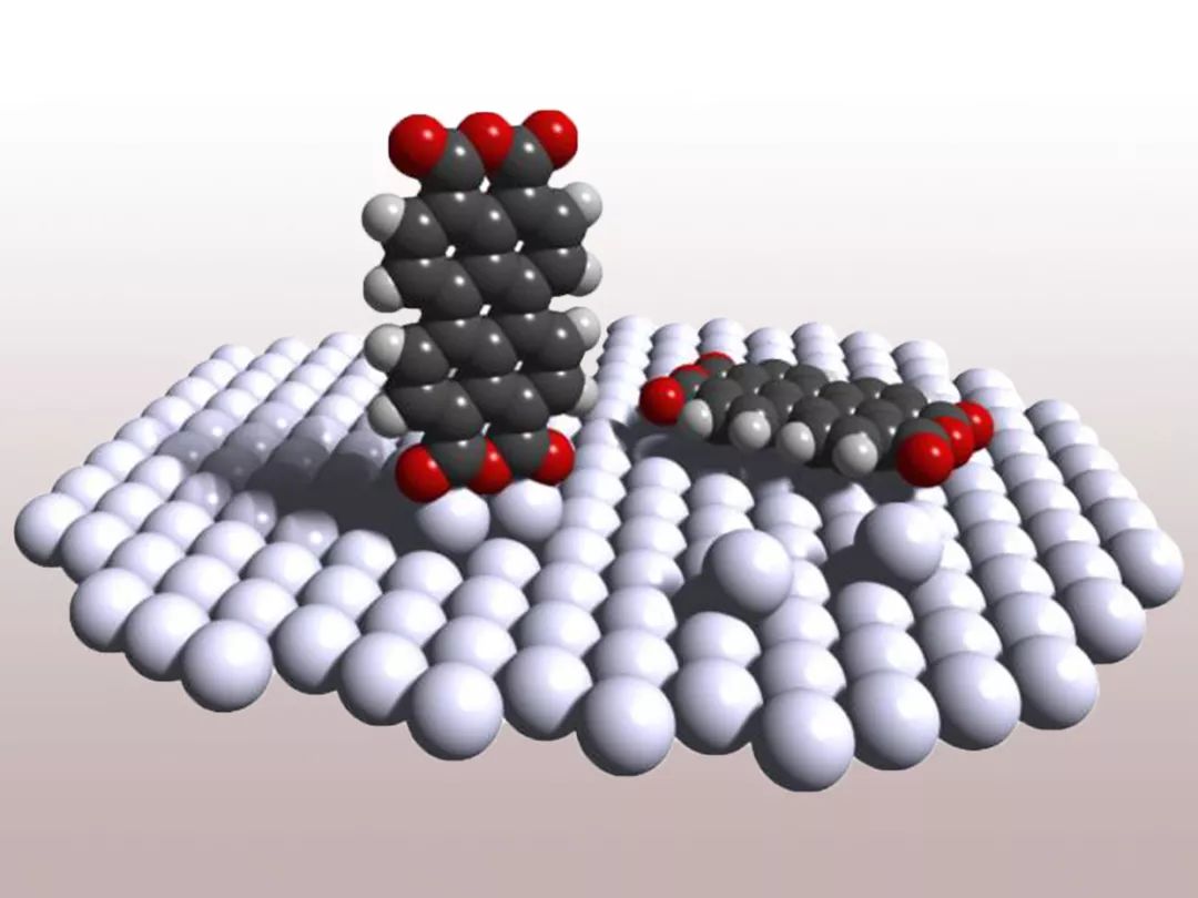 6 月 27 日,这一研究发表在《自然》(Nature) 杂志上。来自德国 Peter Grünberg 研究中心的科学家操纵了一个平面大分子 3,4,9,10-苝四甲酸二酐(PTCDA),让 PTCDA 分子“站”了起来。
