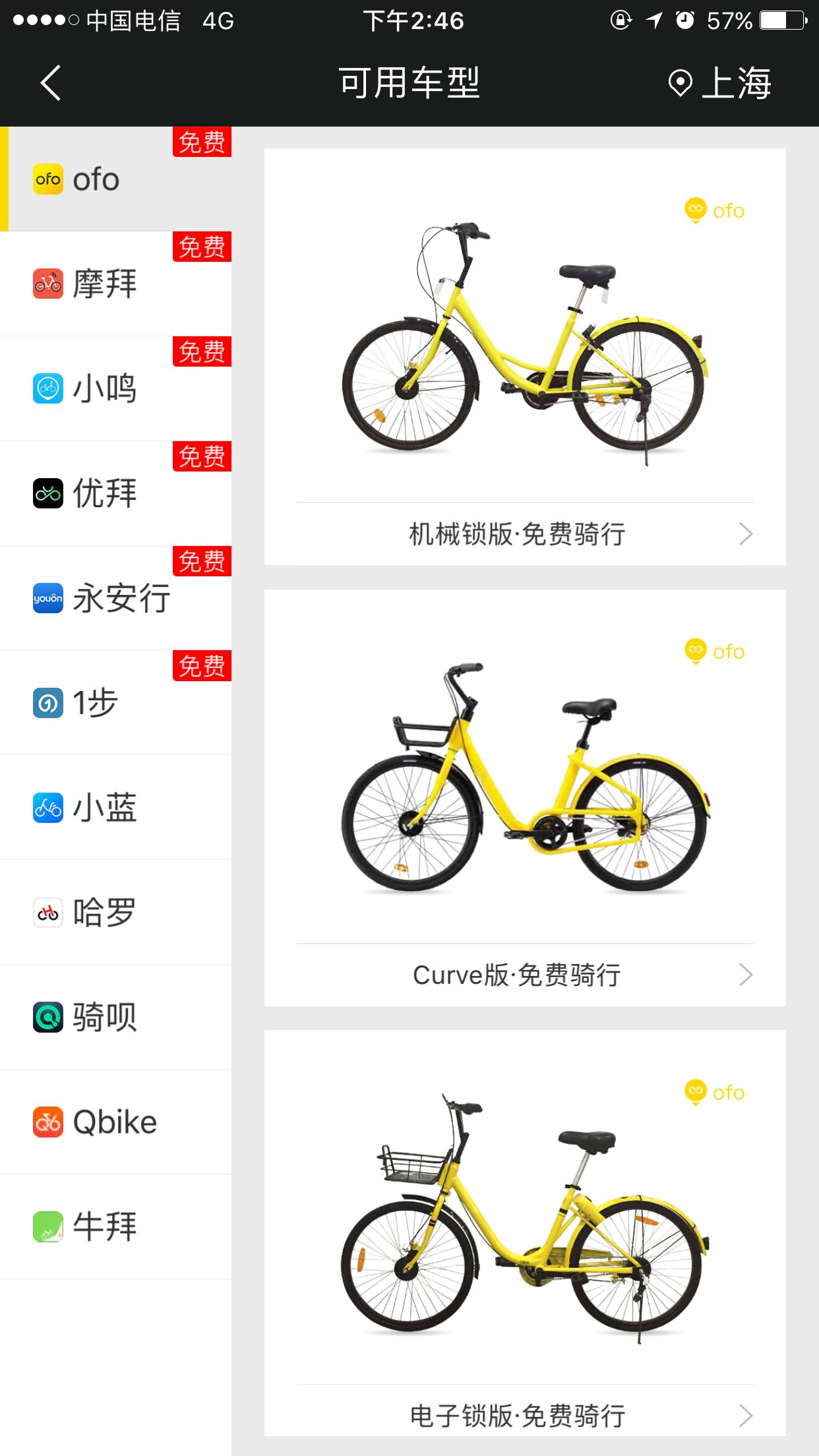 所以,能骑走的单车从11种缩水到3种(摩拜、ofo试验成功,挨踢妹没有找到1步单车,无法确认是否能用)