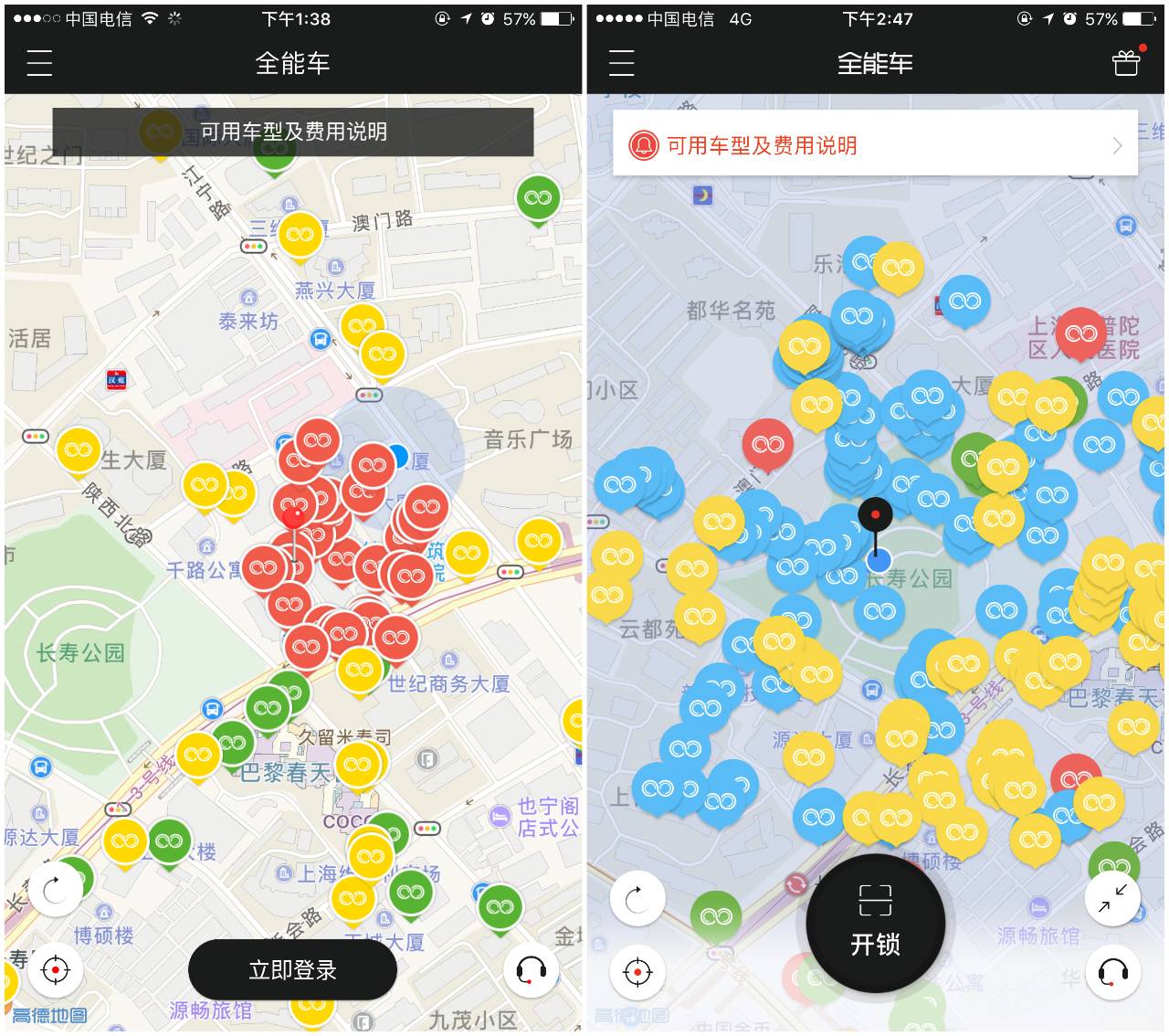 “全能车”注册的流程跟一般共享单车类似,缴纳一份299元的押金,填写你的身份证信息就搞定了。打开“全能车”App,你可以看到附近各种颜色的共享单车,小橙车、小黄车、小绿车…