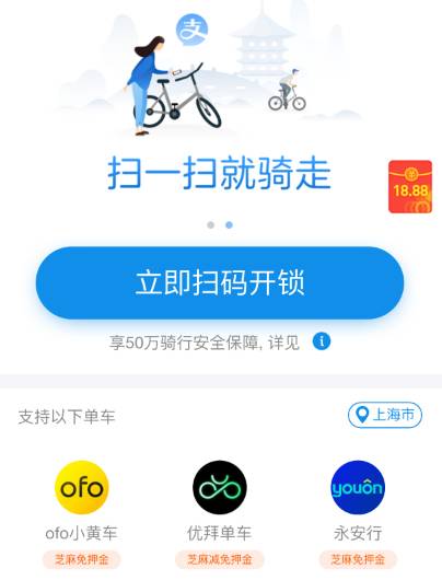 这是直接叫板支付宝、微信的节奏。打开支付宝“共享单车”服务号可以看到,目前还只支持ofo、优拜单车、永安行三种共享单车扫码开锁,芝麻信用在650分以上就可以押金全免或部分减免。微信的小程序阵容似乎更强大一些。但是,没有一个平台能像“全能车”一样,把摩拜单车、ofo两家死对头聚在一块儿。