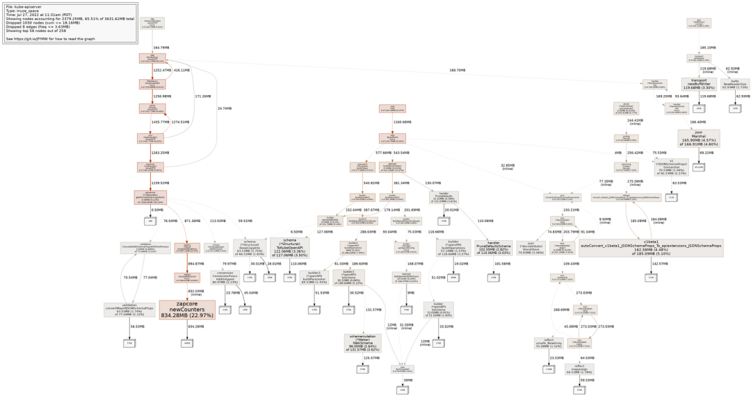 我们再次求助于 Go 的内置分析工具,并很快就有了一些发现。原来,一个名为 Zap 的日志库占用了 API 服务器超过 20% 的内存。颇具讽刺意味的是,Zap 显然是为低开销而设计的,但却不小心被滥用了。