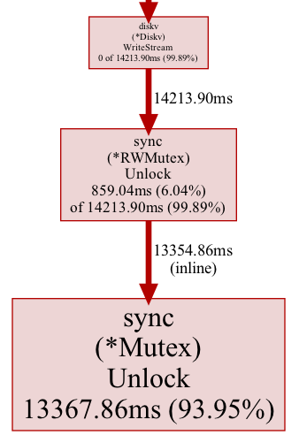 大量的时间消耗在 diskv.WriteStream 互斥量中。