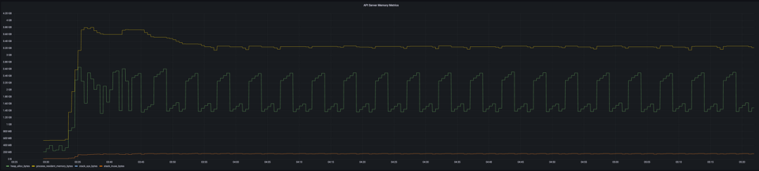 早期的调查还表明,API 服务器会受垃圾收集优化所影响。我们做了一个简单的实验,在一台安装了大约 2000 个 CRD 的空闲 API 服务器上,当堆增长 50% 时触发垃圾收集(默认是在堆增长 100% 时触发),其结果是,峰值 RSS 内存利用率减少了 25%。更频繁的垃圾收集对 CPU 的影响是否可以接受,还需要进一步的测试来确定。一旦 Go 1.19 发布,或许可以试下新的内存限制设置,它提供了 Go 运行时会尝试遵守的一个软内存限制。