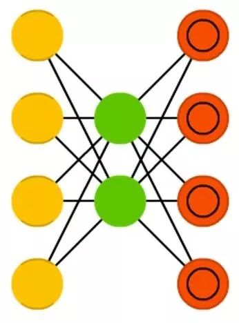 自编码( AE )有一点类似 FFNN, 因为 AE 更像是一个 FFNN 的别的用法而不是一个完全新的结构。自编码的基本思想是对信息自动地编码(像是压缩但不是加密),由此得名。整个网络的形状像一个沙漏,隐藏层比输入层和输出层都小。 AE 通常是关于中间层(一层或两层,因为层数可以是奇数或偶数)对称的。最小的一层通常在最中间,这里是信息最为压缩的地方(网络的阻塞点)。中间层的上方都称为编码区,下方都称为解码区,中间(意不意外)称为编码。我们可以给定输入,误差设置为输入和输出的差异,并用反向传播误差来训练网络。 AE 可以设计成对称的权重结构,这样编码权重和解码权重就一样了。
