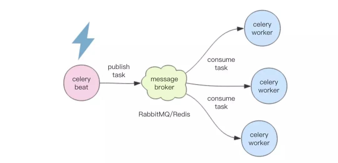 Master 负责管理时间,到点了就将任务消息扔到消息中间件里,然后 Worker 们负责监听这些消息队列来消费消息。