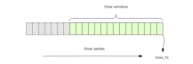 图中绿色的部分就是我们要保留的一个时间段的时间序列信息,灰色的段会被砍掉。统计绿色段中时间序列记录的个数就知道是否超过了频率的阈值。
