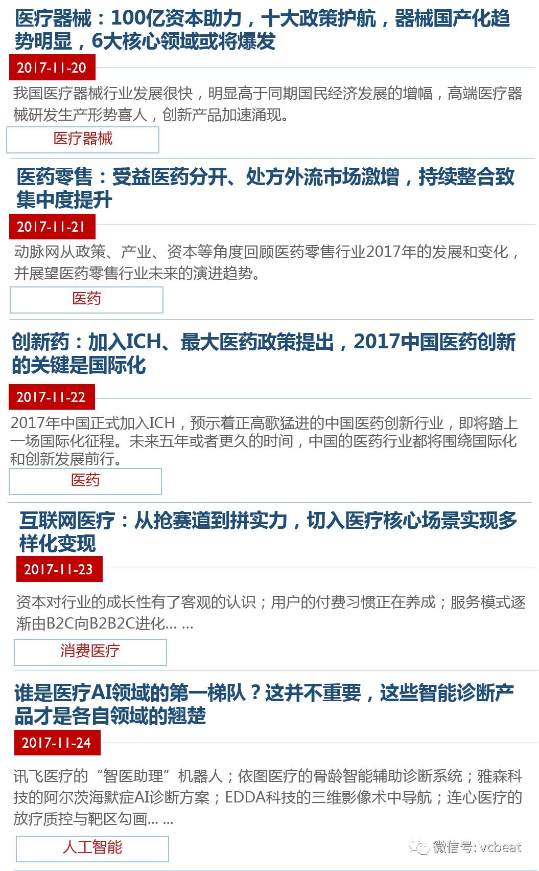 2、2017年获得融资的领域,缺少了护理和医生集团两个领域