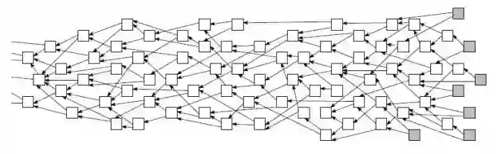 这是一张来自IOTA白皮书的示意图,假如你在超市买了一瓶酸奶,其中中间部位的某小方块代表你的交易。你会发现有直接或间接的交易来确认你的交易。