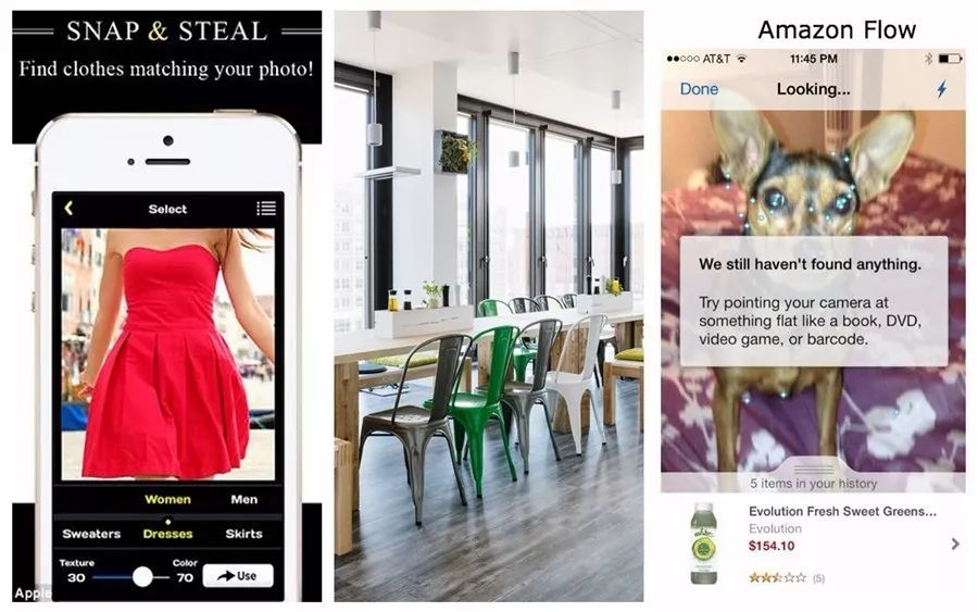 例如,Pinterest最近推出了其镜头工具,用户将手机摄像头对准一个物体,在Pinterest就能查到相同或类似的产品。Houzz是一家家居装饰公司,他们提供视觉匹配服务,帮助用户找到喜欢的图片中的物品。The Flow用户通过相机就能识别在亚马逊销售的产品并获得有关的信息,包括物品描述、评论、视频/音频片段。