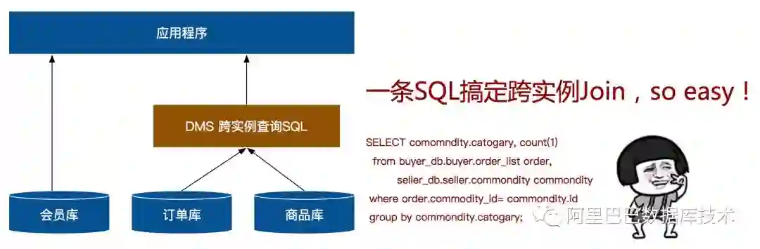 所以,业务方只需要使用DMS跨数据库查询SQL便可轻松解决拆库之后的跨库查询难题,业务基本无需改造。