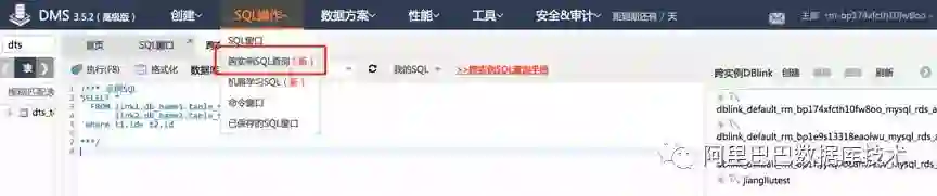 2. 从SQL操作中,进入➡️ “跨实例SQL窗口”