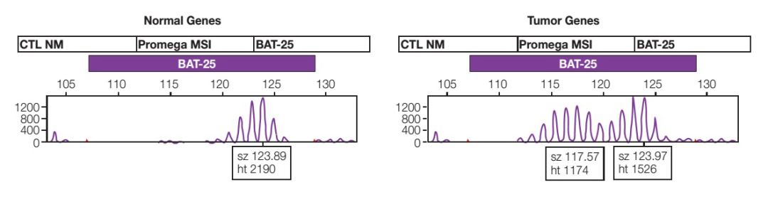 微卫星不稳定性 (microsatellite instability, MSI)-许多癌症是由DNA错配修复 (mismatch repair, MMR) 基因突变和/或启动子高甲基化引起的。MMR基因编码的蛋白质在DNA复制过程中对碱基对错配进行监察,以避免任何错误的发生。MMR缺乏导致基因突变率升高10-100倍,最终引起高MSI突变型肿瘤。
