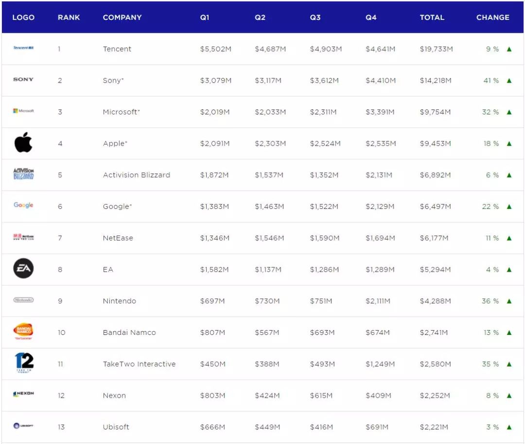 Newzoo表示,这份榜单只是基于各大公司公布的财报而排名,实际数据可能有所差别