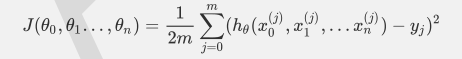 比如对于线性回归,假设函数表示为hθ(x1,x2…xn)=θ0+θ1x1+..+θnxn,其中wi(i=0,1,2...n)为模型参数,xi(i=0,1,2...n)为每个样本的n个特征值。这个表示可以简化,我们增加一个特征x0=1,这样h(xo,x1,.…xn)=θ0x0+θ1x1+..+θnxn。同样是线性回归,对应于上面的假设函数,损失函数为(此处在损失函数之前加上1/2m,主要是为了修正SSE让计算公式结果更加美观,实际上损失函数取MSE或SSE均可,二者对于一个给定样本而言只相差一个固定数值):