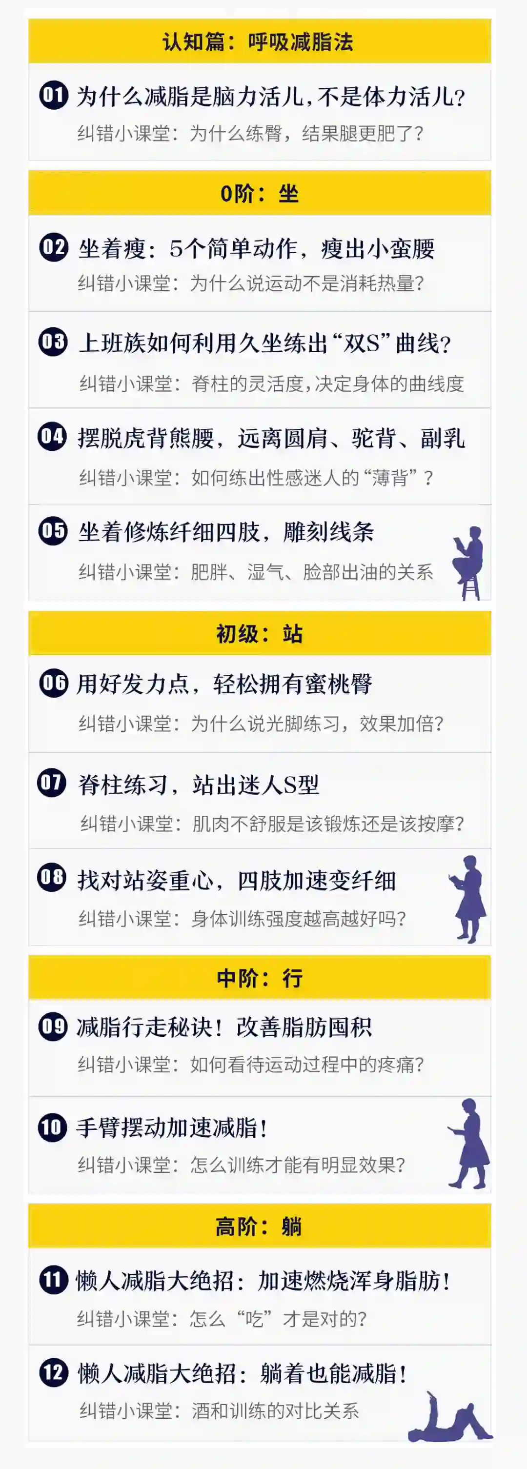 而懒人减脂法,教授日常站、卧、坐、走的标准动作。地铁站一站,公司坐一坐,在外走一走,在家躺一躺,一旦做对,使用正确的肌肉发力点,就可能瘦下来。
