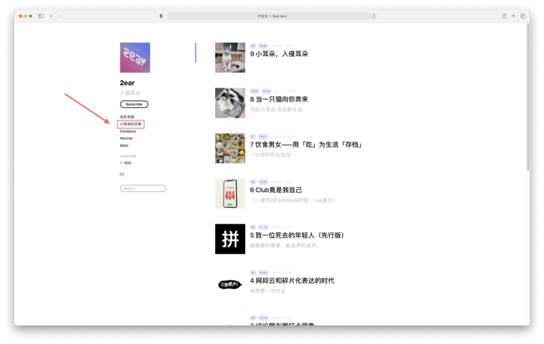 不过,仅用 Typlog 挂域名来指向 Notion 网页,显然是大材小用的做法。既然前面提到了播客,不如再给小耳朵做个播客。
