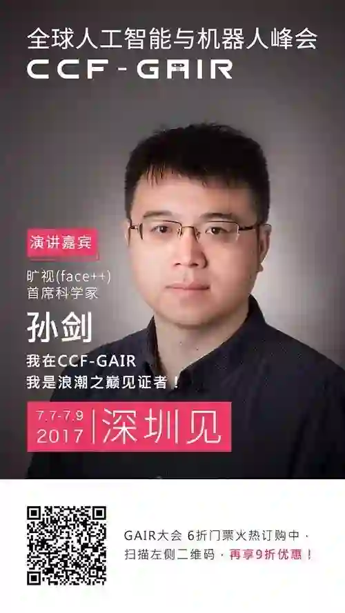 如果您也想来到现场一睹孙剑博士的演讲风采,欢迎抢购 CCF-GAIR 大会的门票。