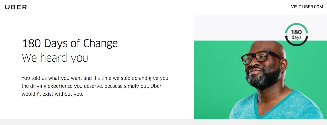 在卡兰尼克离职后,Uber宣布了180天改造计划,并进行了重组(re-org)。