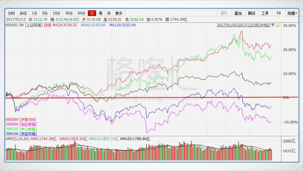 2017年12月,证监会发布了2017年行政处罚情况综述,全年作出行政处罚决定224件,罚没款金额74.79亿元,同比增长74.74%,市场禁入44人,同比增长18.91%,行政处罚决定数量、罚没款金额、市场禁入人数再创历史新高。现在的A股,不需要徐翔,需要是价值股,需要的是慢牛,穿透到人的监管体系,想要啥,就有啥,随之而来的是2017年以沪深300为首的稳稳的幸福与创业板的一路向北。