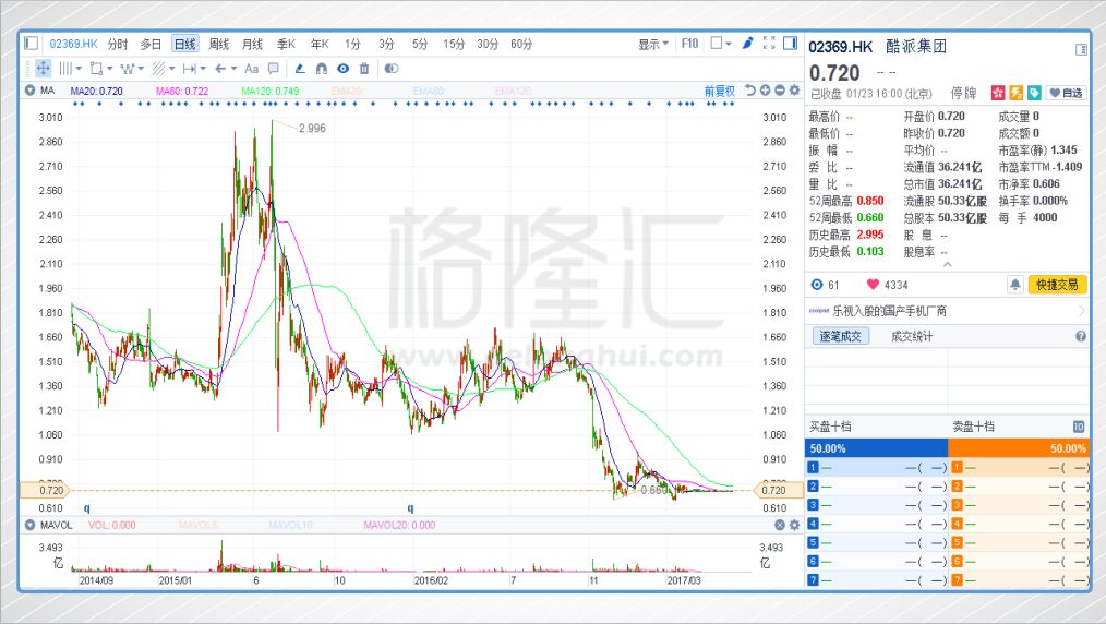 彼时乐视最风光的时候,乐视整体的势头向上猛冲,不顾商业常识的负成本的定价让硬件营收迅速扩大支撑故事,新介入的手机板块也在快速放量,眼光就看上了当时依然有点江湖地位的——中华酷联中的酷派集团(2369.HK)。
