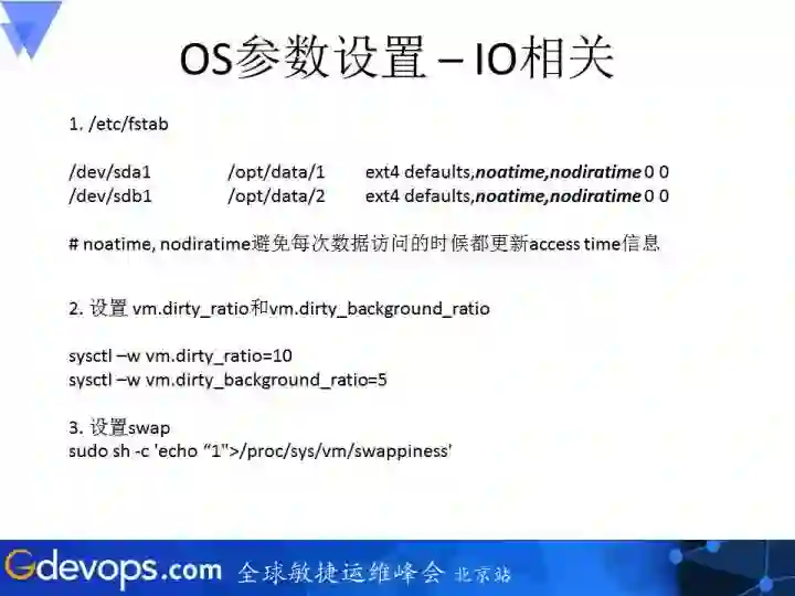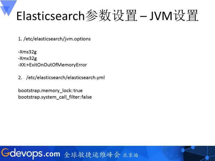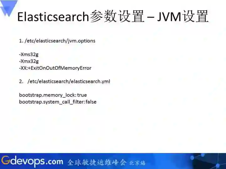 下面要讲的设置就非常具体了,从三个层面来讲:第一个有关Linux的系统配置,第二是集群层面的参数设置,最后会涉及到存储到集群上的索引设置。