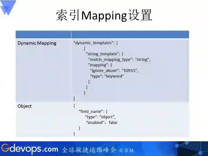 下面一栏对应特别特别大的字段,如果我们只是存储这个字段的内容,不对这个字段做搜索也不做任何分词,可以将类型设置为object,enabled设置为false,即便包含嵌套信息也不会被解析。