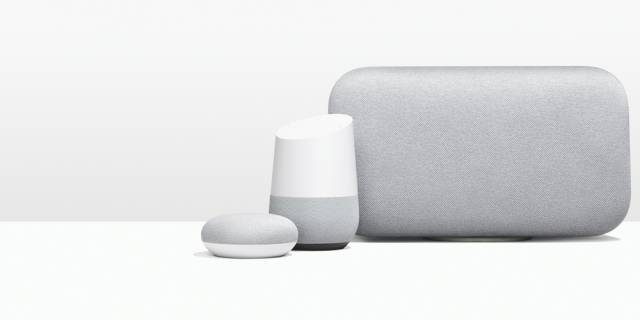Google Home 音箱也在此次发布会上新增两款产品—Google Home Mini 与 Googe Home Max。
