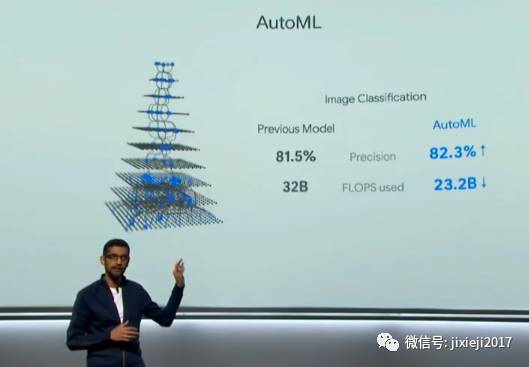 Pichai表示,电脑应该适应人们生活的方式,而不是人去适应电脑。很开心大家的关注点从移动终端转向人工智能。 谷歌创建了一套人工智能机器学习的系统叫做AutoML。