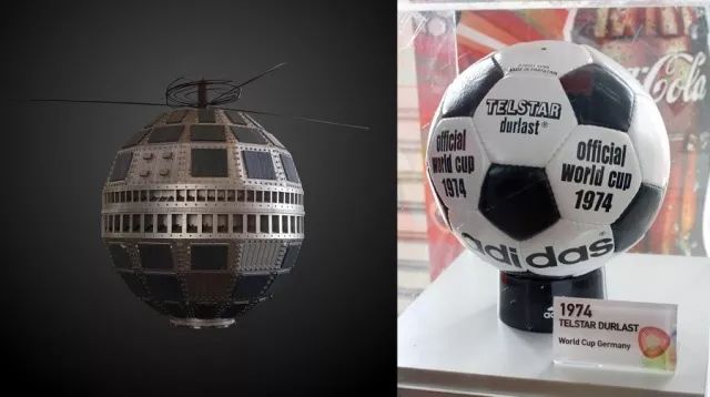 TelStar 1卫星和足球,可以看到的确长得很像,不过后来的TelStar已经不再是简单的球形了(图自NASA和FIFA)