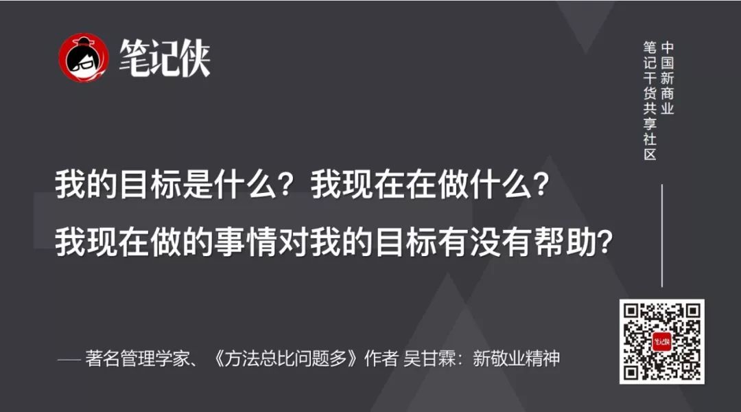 第一点叫做总结目标;第二点是让自己明白自己的现状是什么;第三点是辨别目前所做的事情对目标而言有没有价值。有,就专注下去好好做;没有,立马砍掉。