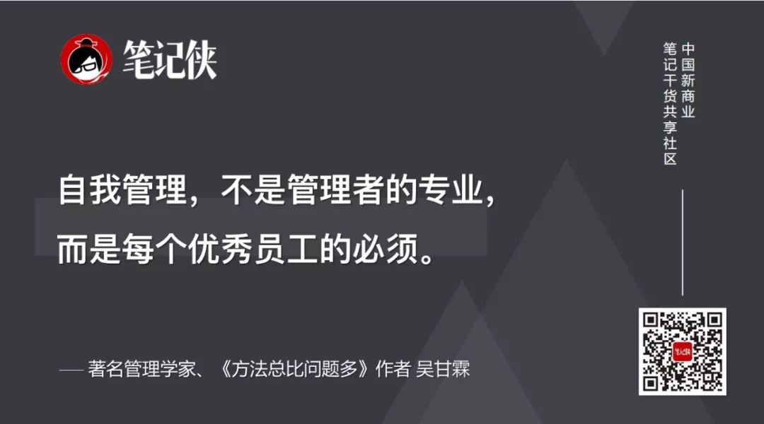最后做个简单的总结,大家记住这句话:自我管理,不是管理者的专业,而是每个优秀员工的必须。