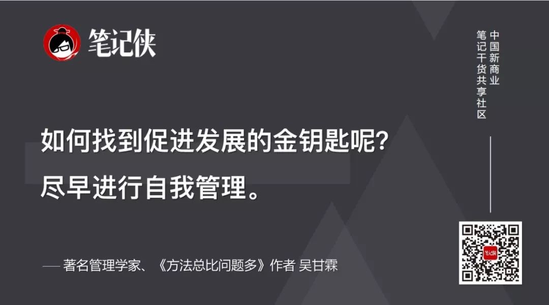 但问题是,如何找到促进发展的金钥匙呢?我觉得答案是:尽早进行自我管理。