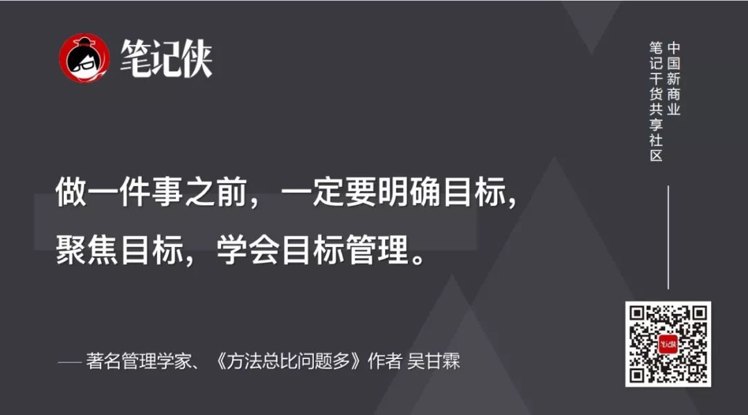 所以,做一件事之前,一定要明确目标,聚焦目标,学会目标管理。毛主席有一话叫做“吾心不定,输个干干净净”,说的就是这个理。