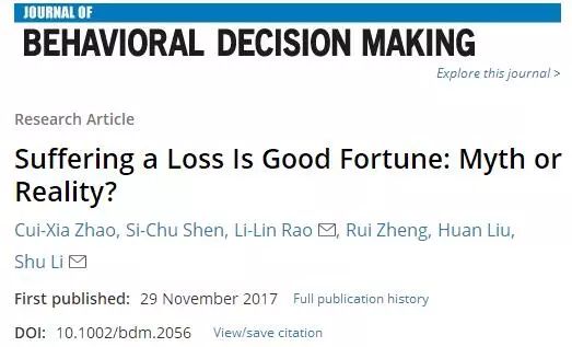 在现实世界的决策中,我们时常会采取或接受一个明显导致损失的选项,例如选择“无酬加班”这种“吃亏”行为。主流决策理论从不将此解释或预测为我们主动做出的选择行为,因此我们尚不清楚应该如何解释此类选择行为,反倒是中国古语“吃亏是福”,不仅对选择单一损益选项的决策行为进行了阐释,而且大力推崇这类行为。那么,为什么这一古老的信念能得以流传并被社会所接纳?为什么人们愿意主动选择“吃亏”?“吃亏”是能够带来现实中的真金白银,还是只是个神话传说?