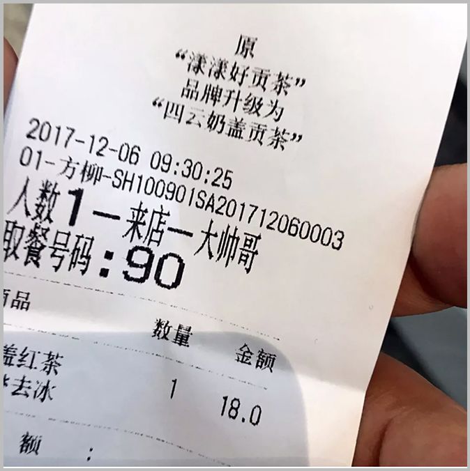 已经被服装店、美发店用烂的“帅哥、美女”套路,猛然间被茶饮店打印在了小票上,感觉清新脱俗,顾客忍不住晒到朋友圈,岂不是一次很好的营销。