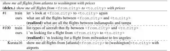 数据增广(Data Augmentation)是通过扩大机器学习系统中训练数据的大小来解决数据不足问题的有效方法。 数据增广在诸如图像分类、语音识别等很多领域取得了成功,但是在任务型对话上的相关研究还很少,据我们所知目前Kurata等人 2016年的工作(Kurata et al. 2016)。Kurata等人在工作中通过给seq2seq的中间表示加入随机扰动的方式生成新的句子。但是他们没有考虑句子之间的关系。