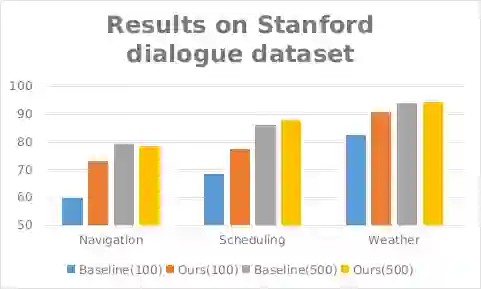 在本文中,我们在广泛用于LU的ATIS数据集进行了实验。为了在ATIS之外的新域上测试我们的模型,我们还在斯坦福对话数据集上做了一个新的有LU标注数据集。为了模拟数据不足的情况,我们按照Cheng等人的划分,将ATIS训练数据划分为大中小三种数据子集(Chen et al. 2016a)。