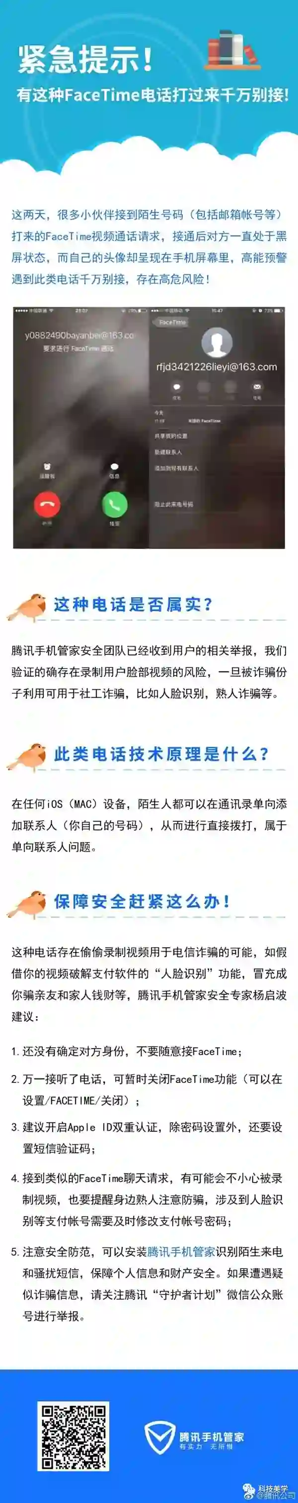 今天下午,腾讯官方发微博提醒,腾讯手机管家安全团队已经收到用户的相关举报,而且验证的确存在录制用户脸部视频的风险。一旦被诈骗份子利用可用于社工诈骗,比如人脸识别,熟人诈骗等。