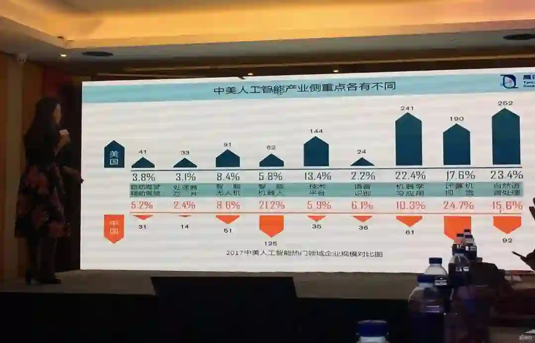 从2017年的数据来看,中国AI企业在计算机视觉与图像领域的占比最高,为24.7%,站在世界前沿。但我国在处理器/芯片领域积贫积弱,多集中在智能开发定制化芯片,在通用芯片领域还相对空白。